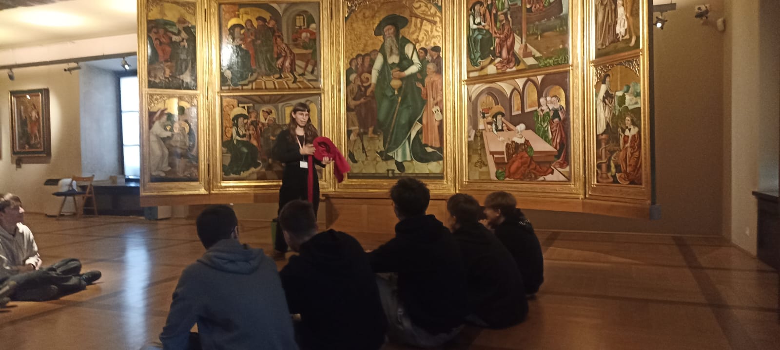 Podczas lekcji młodzież miała okazję zobaczyć wybrane dzieła sztuki średniowiecznej, m.in. Matkę Boską z Dzieciątkiem z Krużlowej Wyżnej, Ogrójec i figury rycerzy Wita Stwosza, lwa z kościoła św. Floriana w Krakowie, epitafium Wierzbięty z Branic oraz retabulum ołtarzowe św. Jana Jałmużnika z kościoła Augustianów w Krakowie.
