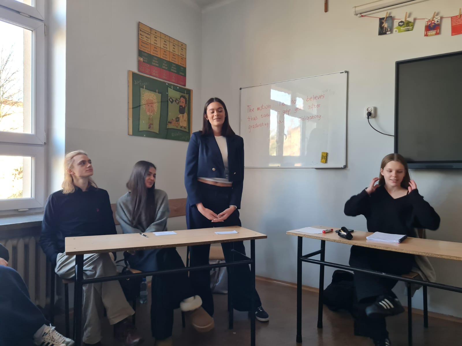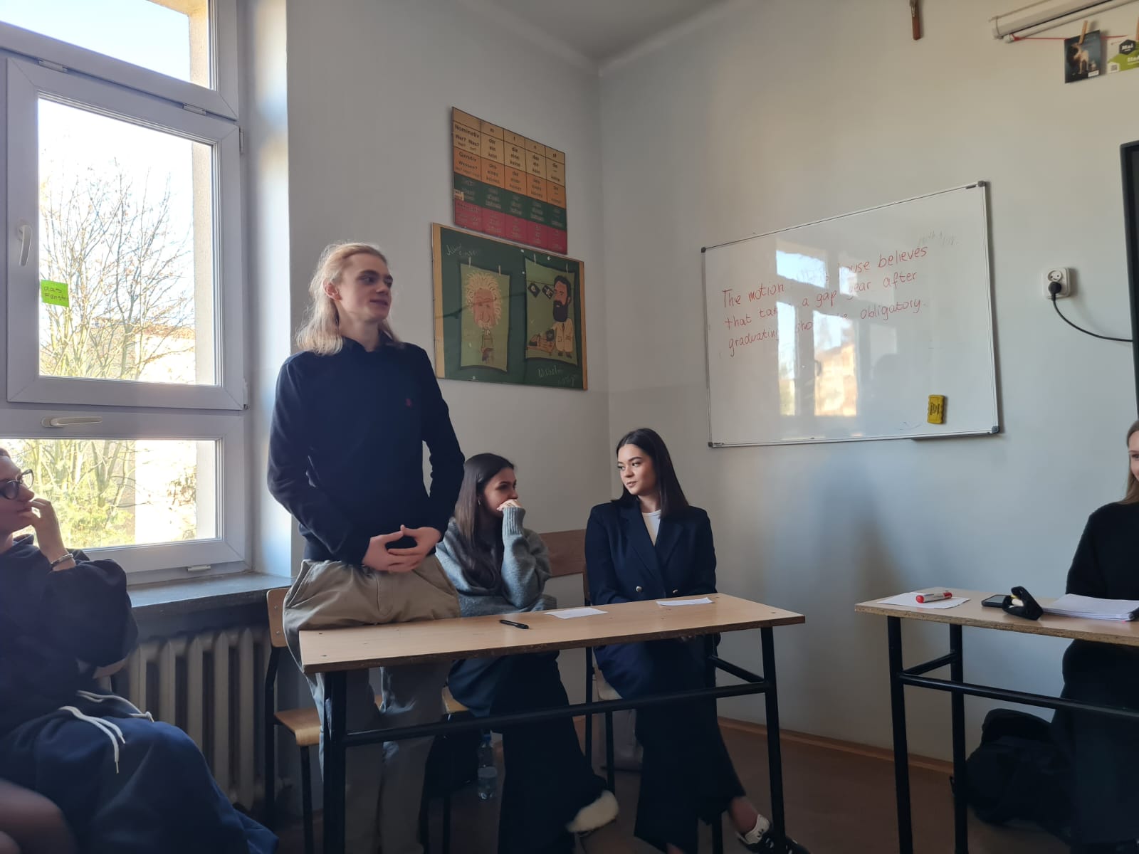 Uczniowie klas IIIb i IIIc wzięli udział w wyjątkowym wydarzeniu edukacyjnym w ramach projektu „Oxford Debate” . Tematem debaty było: „This house believes that taking a gap year before going to university should be obligatory”.
