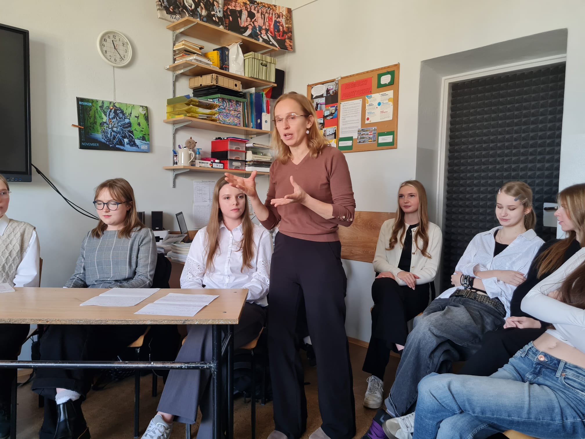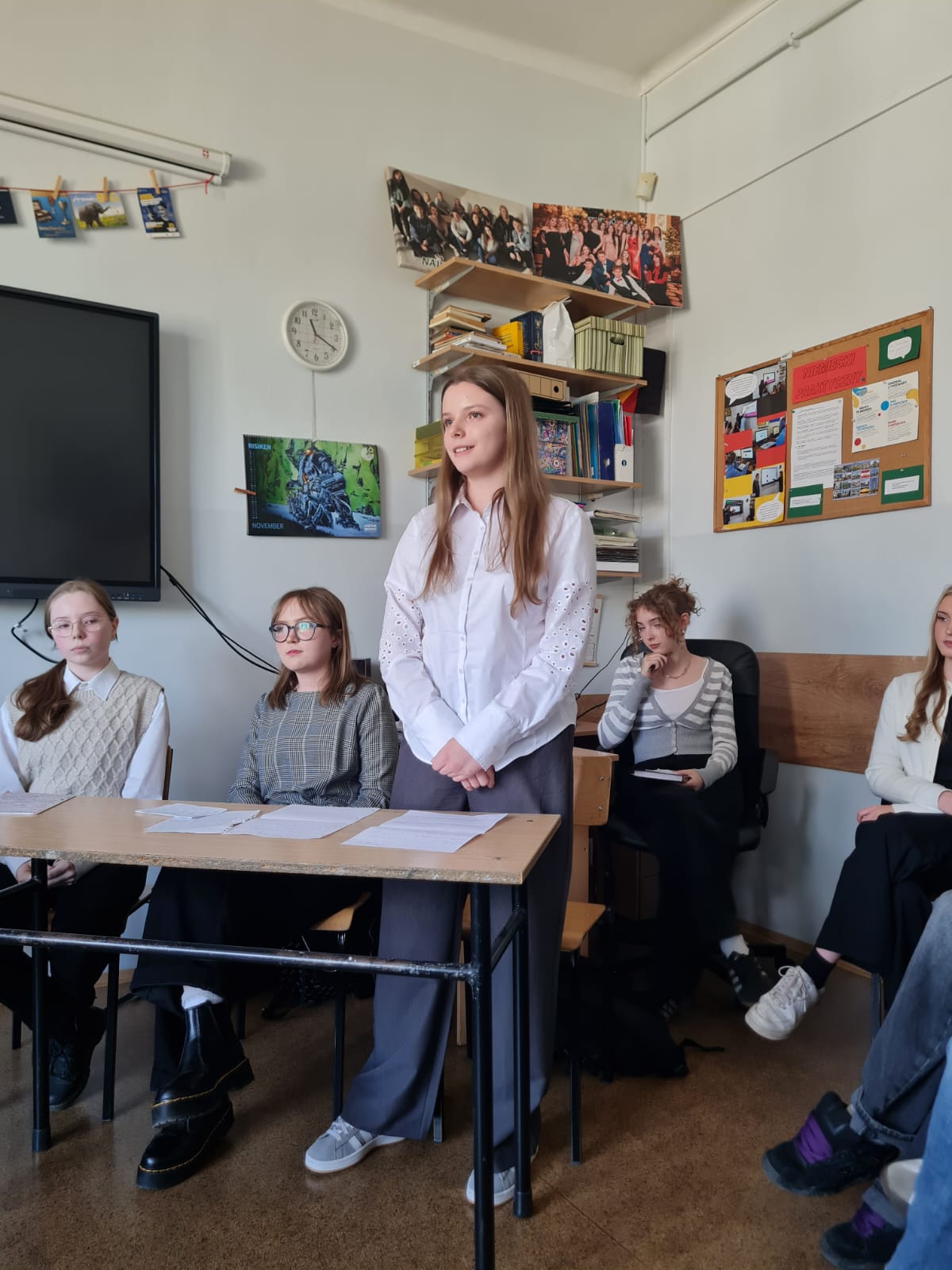 Nad merytorycznym przebiegiem debaty czuwała Edyta Kula, a zajęcia były również obserwowane przez studentkę filologii angielskiej, Sylwię Wójtowicz, odbywającą praktykę w naszej szkole, co pozwoliło na dodatkową weryfikację poprawności językowej i organizacyjnej wydarzenia.